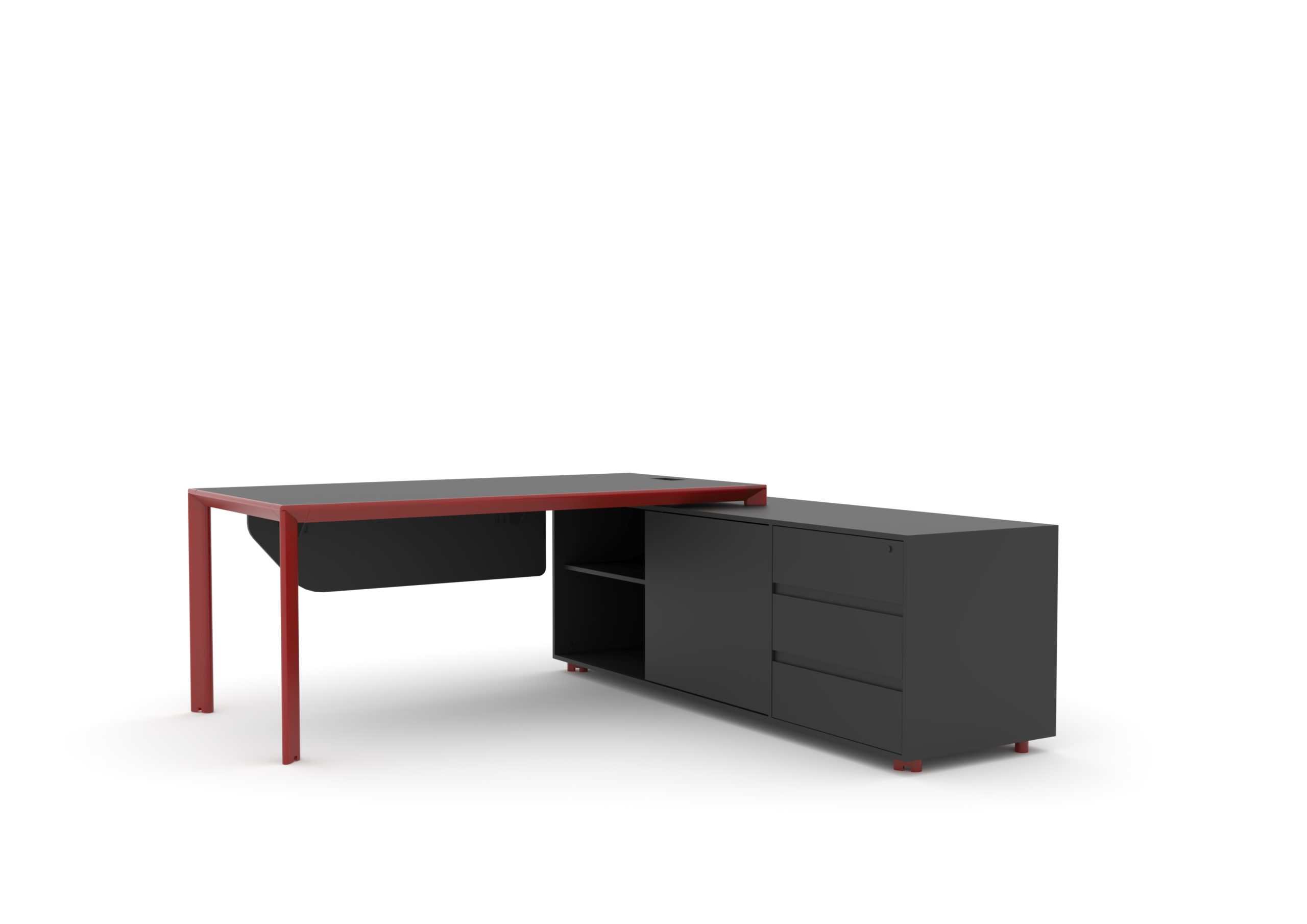 • ال میز دارای درب ریلی با مکانیزم آرام‌بند است.